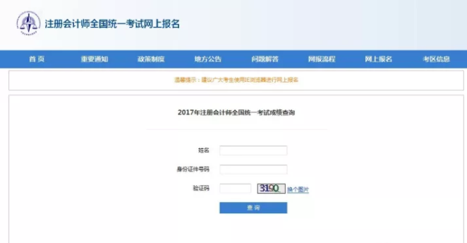 CPA考试成绩查询”
